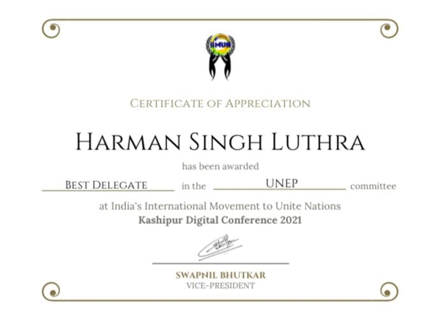 Best Delegate (Ist)- Harman Singh Luthra